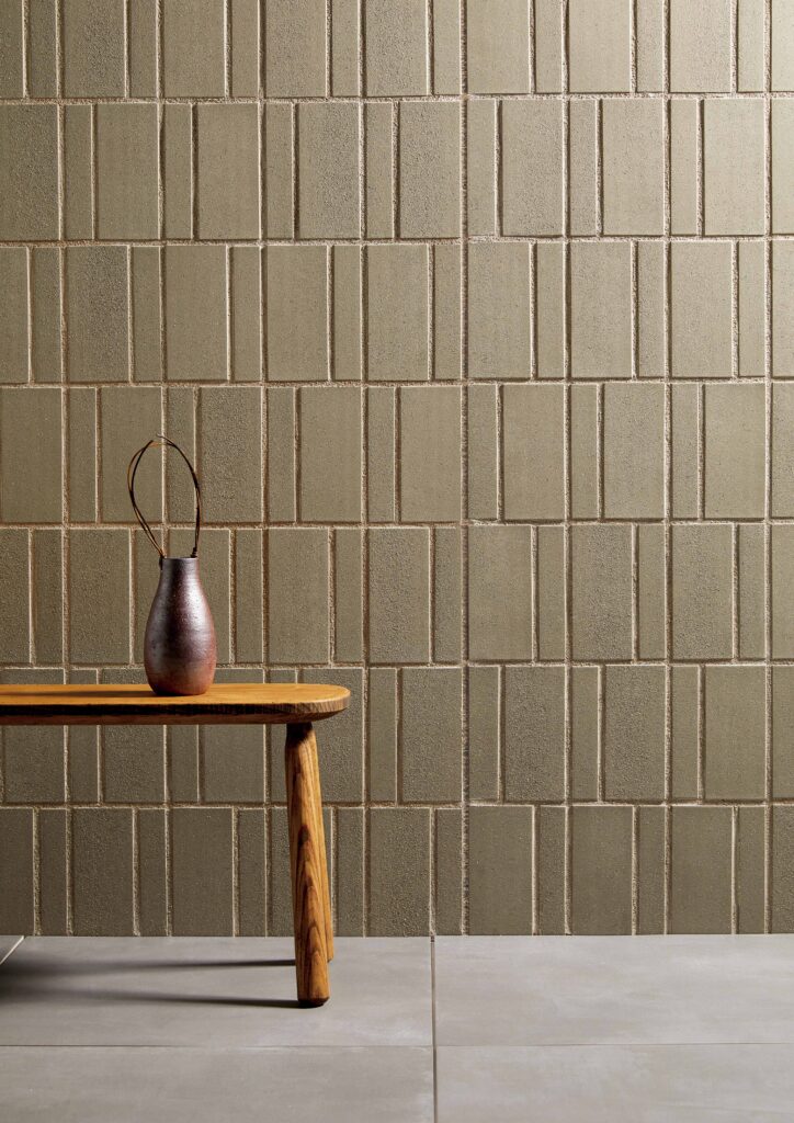 シンプルな表情を持つ、小ぶりな湿式タイル。粘土ゆえの揺らぎと組み合わせのリズムが、“土もの”の奥深さを引き立てます。