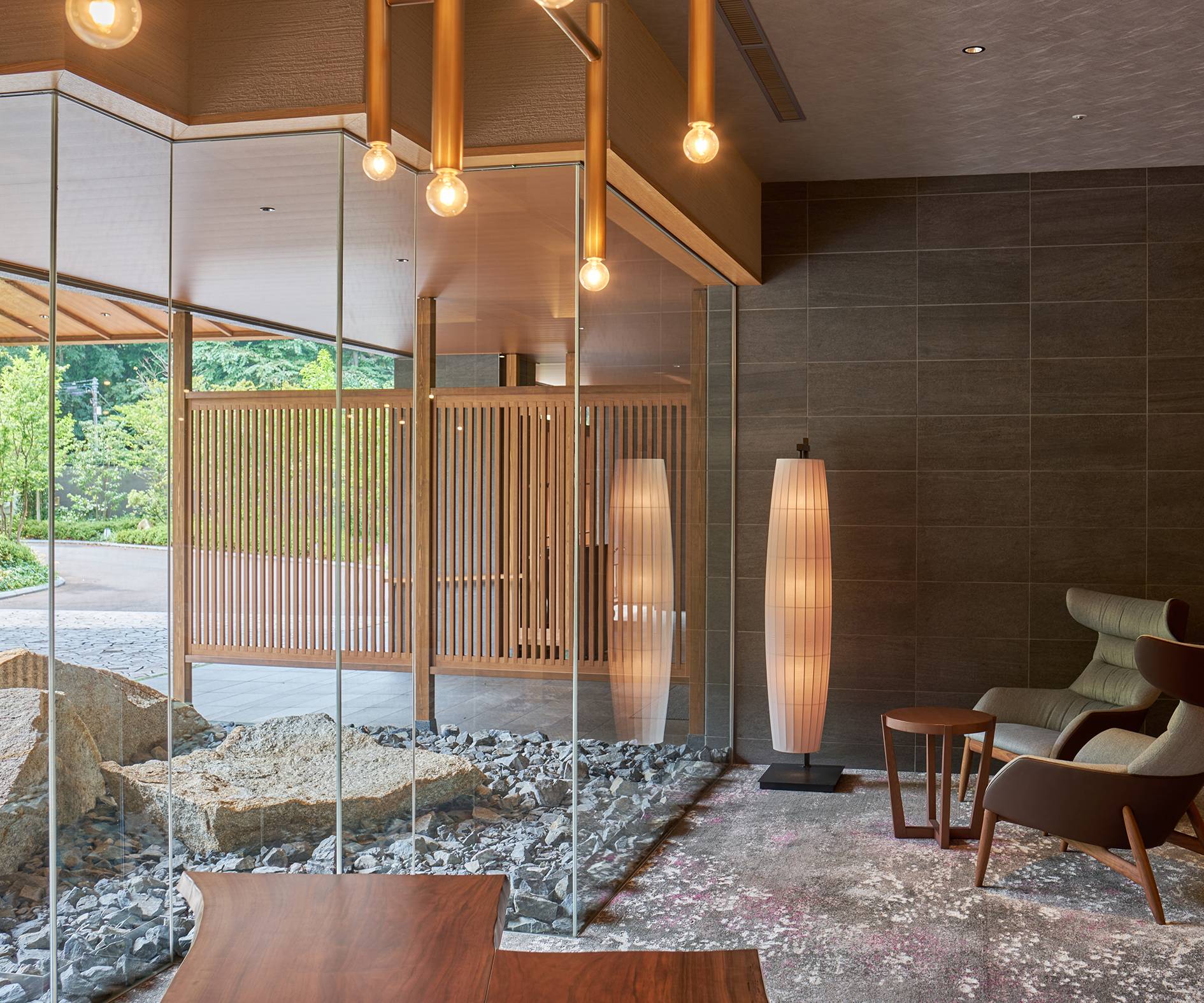 心安らぐ和の風合いにあふれるホテル「はつはな」。バーリントンストーンの趣きを追求した「スチュワート」により、より品格のある雰囲気に。
